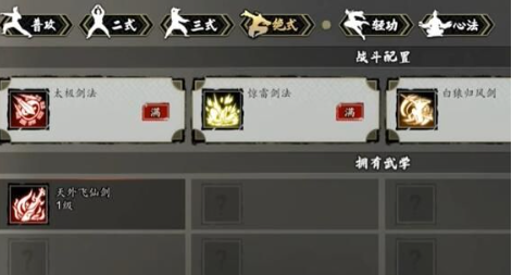 五、武学建议大家先从剑法学起,大部分剑法都是主线获得,也可以切磋获得,还可以前往平康城武馆购买秘籍,价格不一。