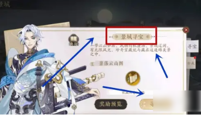 翻开花亦山心之月手游,在休闲玩法里前往景域寻宝,如图。