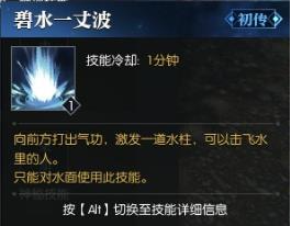 技能冷却:1分钟,向前方打出气功,激发一道水柱,可以击飞水里的人。只能对水面使用此技能。