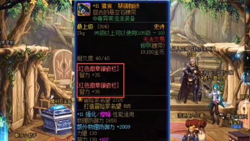 2、再来到红鼻子德拉这里,兑换一个95级史诗腰带,随便打造一下,附魔、打孔、强化都可以;