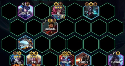 阵容核心是开局来3皮城且起码能做到八连败,如果遇到空城的那只能自认倒霉,能做的就是用发条,杰斯将蔚卡在右下角,尽最大的可能来连败。
