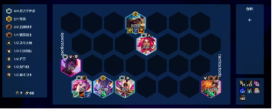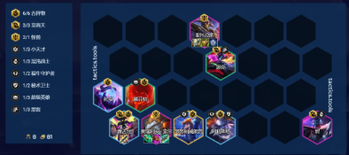 阵容的核心在于用龙龟当前排,目前冷门好三的三费卡,而莫甘娜则提供减抗与控制,非常适合应对黑客妖姬,在妖姬还没三星前我们的伤害都是足够击杀的,而四迅捷则为星守卡提供基础的回蓝,加快卡莎的启动,有莫甘娜后卡莎则不需要电刀,可以用青龙刀/羊刀当启动装快速触发技能从而叠加攻速,是当前非常契合三费卡抬节奏的玩法,外面有妖姬武器会压缩卡池,比高星守卡莎更适应版本。
