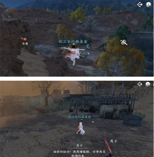 4、我们就跟随这个男子一直前行之后,就继续与男子进行对话,就可以完成该奇遇任务了。