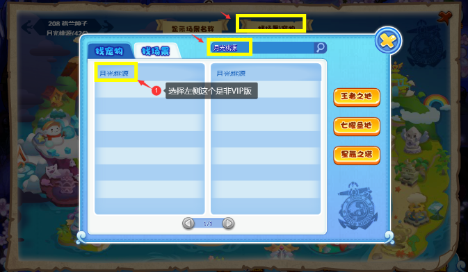 准备材料完毕后,需要前往月光桃源(非VIP版)进行酿酒,策划忙着下班放假,还不给直达通道按钮,小洛克们可以地图搜索:月光桃源抵达