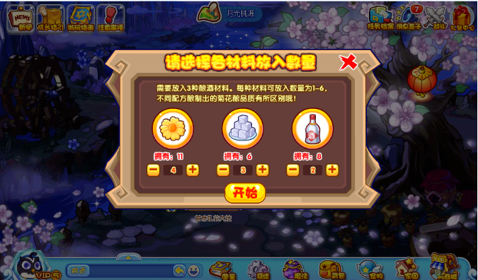 到了场景后就可以开始酿酒了,按照一定比例进行分配,今天测试的配方如下,仅供参考: