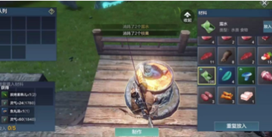 2、准备【露水*2+棪果*2+绿阶以上的鱼】的所有材料,然后去进行制作。