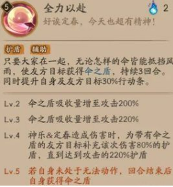 被动是当拥有伞之盾的友方选择敌方单体目标时候,会使用普攻协战。这点和食灵的被动食灵自身协战是类似的。