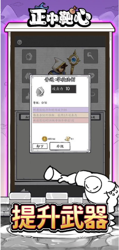 正中靶心是一款肉鸽塔防。一大波怪物源源不断的来攻打城堡,你能守住吗?简单易上手,一分钟就上手,玩一局就沉迷;无需走位操作,只需要选择技能,手残党也能玩的很开心;技能丰富多样,升级路线也是完全不同,有丰富的套路可以玩;宝石随机掉落,随时随地有惊喜;装备技能自由组合和搭配,永远都有你想不到的玩法。