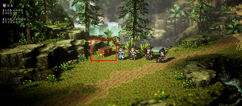 1.玩家们在一线天的图中,进入山谷之后一直沿着小路走,到瀑布边上就能够看见游戏中第二个宝箱;