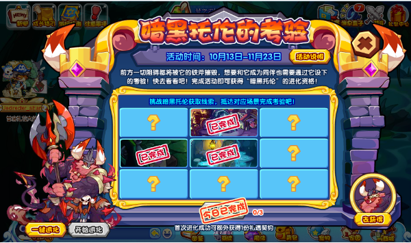 当九个地图均完成考验,就可以开启:暗黑托伦 超进化资格!