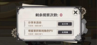 左边这里回显示你有的视察次数,如果没了可以做任务获取,一共需要4次