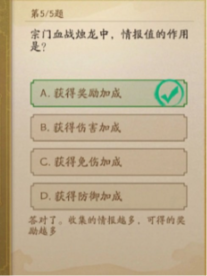 5、宗门血战烛龙中,情报值的作用是?
