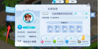 2. 然后在个人信息页面的左侧找到下方的【设置】按钮选项;