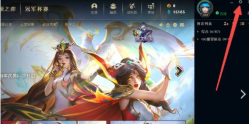 1、我们打开电脑上的英雄联盟客户端后,打开右上角的设置面板;