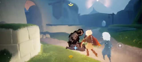 4、看完动画以后带着先祖一直往前走,这个需要被唤醒的石像就在蓝色星光所显示的位置;