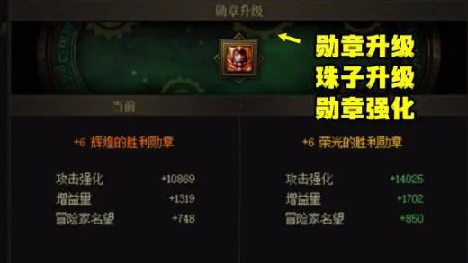 对于普通玩家来说,可以采取自给自足升级模式,获取的材料全部自用,按照“升级勋章—升级守护珠—勋章强化”的顺序,依次满级。