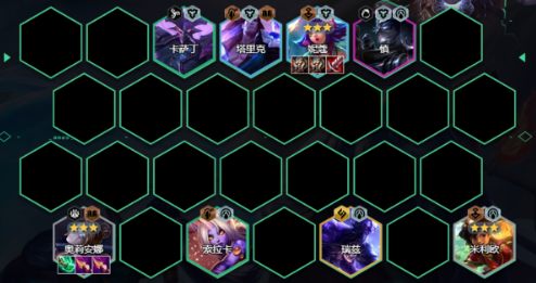 1、阵容组成:发条、米莉亚、索拉卡、塔里克、妮蔻、慎、卡萨丁/奎桑提、瑞兹