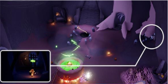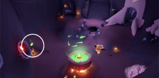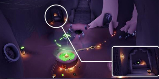 2、第二个糖果在万圣地图魔法锅区域,通往出口的楼梯左侧螃蟹牢笼处。