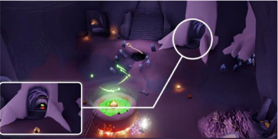 3、第三个糖果在万圣地图魔法锅区域,通往出口的楼梯右侧树干上。