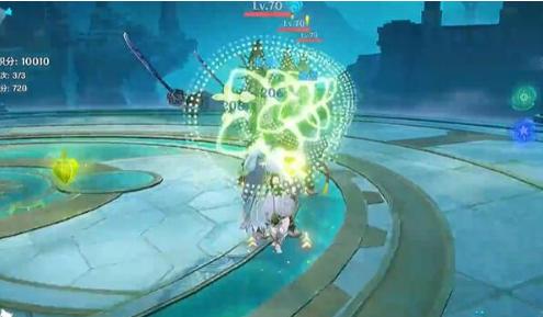 另外,第一轮中所有敌人都是水元素,建议尽量多上草元素角色,为防止草原核对自身造成的伤害,建议搭配一个护盾或治疗角色来帮助生存。