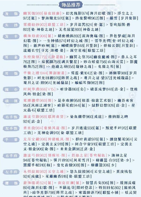 8.鞋子:殊途同归4875[岁月集影]>残破舞步4845[图]>平和夙愿4840[云:空之境]>隐藏预言4825[云空之境]>交替越步暮4820[染-进联盟小铺]>碧涧竹叶4770[阵营之战]>青吟4735[宴飨风流-图]>擎影4730[阵营之战]>悠然4700[染-联盟工坊]>踏草声.蓝4640[染-少]>月笼花4625[岁月集影