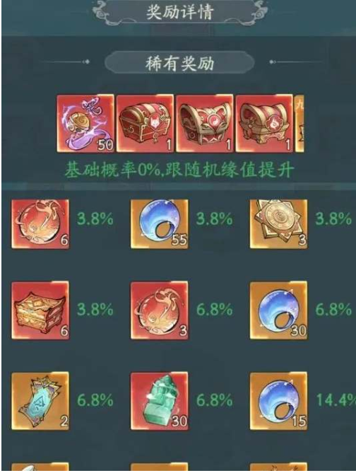 1、在进行觅宝前需要选好大奖,每次进行觅宝可以获得机缘值,机缘值越高获得大奖的概率越高,达到上限则必定获得大奖。