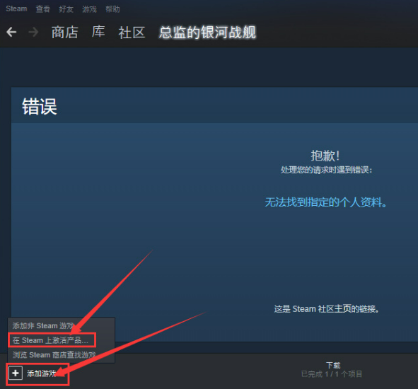 3.如果是steam平台的激活码,首先打开steam平台,然后点击左下角的添加游戏选项,再点击“在steam上激活产品”