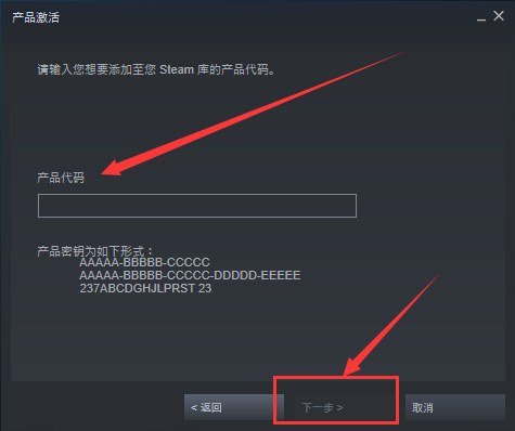 5.最后输入产品代码也就是激活码,再点击下一步即可激活游戏。