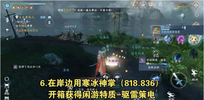 5、岸有一个辟雷宝箱(818.836)使用寒冰神掌打开宝箱,获得闲游特质驱雷策电