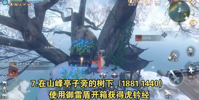 7、山峰亭子旁的树下(1881.1440)和(1909.762)使用御雷盾开箱获得虎钤经