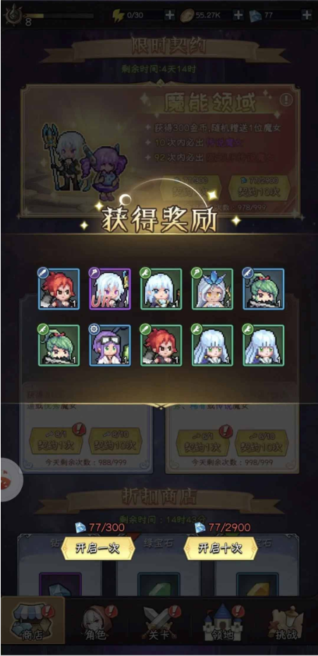 666666:突破石*50、高级召唤契约*1、普通召唤契约*1、钻石*100;