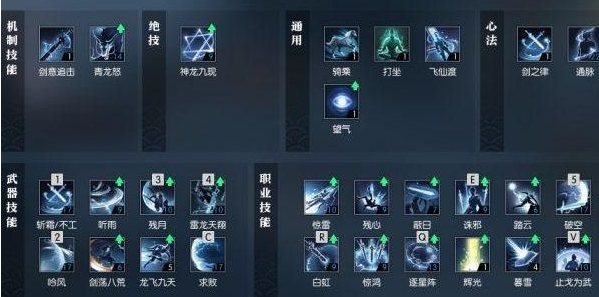 搭配白虹,听雨,雷龙天翔,惊鸿,逐星阵,残月,破空,止戈为武,斩霜/不工,求败;