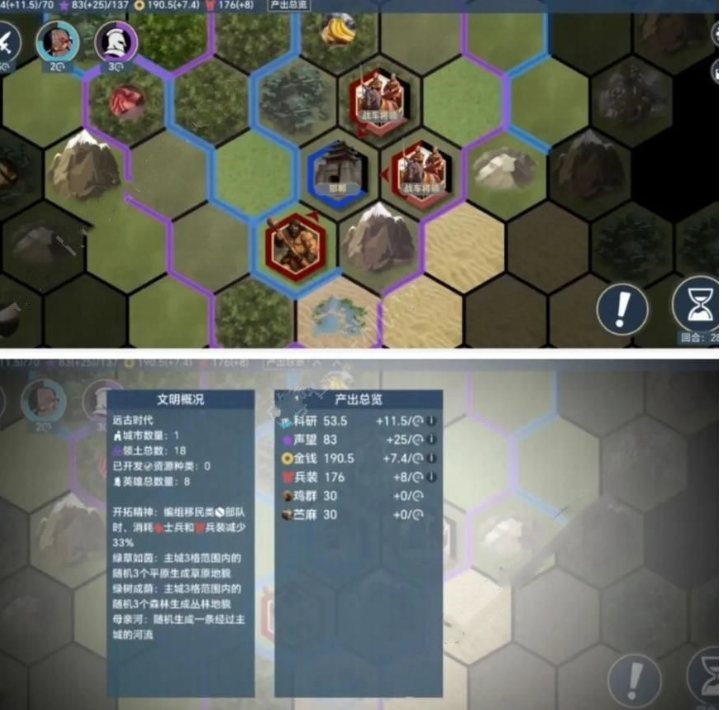 2.英雄优先选科技单城+5,森林粮食+5/工能+5,金币+3,丛林声望+3。