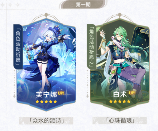 第一期:芙宁娜(五星)、白术(五星)、夏洛蒂(四星)