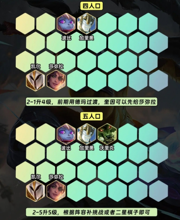 2-5升5级,5级根据阵容补挑战或者上二星前排坦克