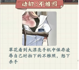 起初只是想教训下大漂亮,但看到大漂亮手机中自己的不雅照,盛怒之下,下了杀手。