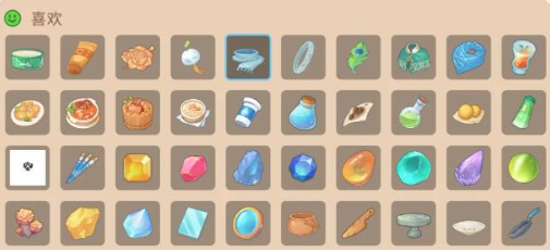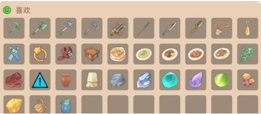 喜欢:玫瑰石、钻石、蘑菇汤、铁打药等