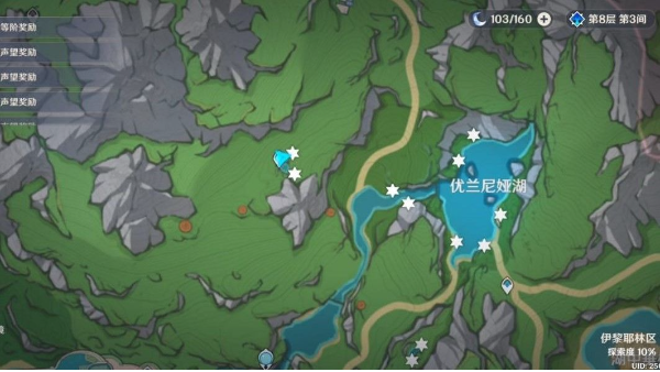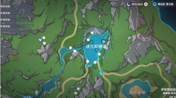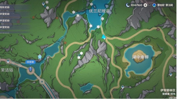 所有采集点位于优兰尼娅湖周围的水边,沿着湖边走一圈即可。