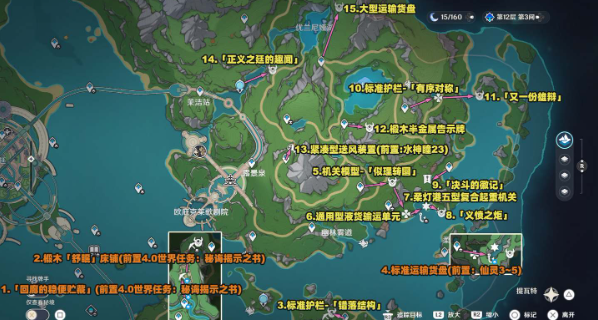 4、有些宝箱是跟随仙灵解锁的,有些宝箱是需要完成前置的任务或解密才能开启的,大家可以对照位置去游戏内探索收集一下。
