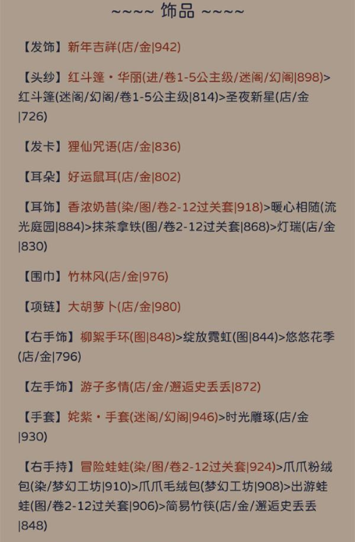3.外套:绵羊外套(重构|2275)>羽绒背心(迷阁/幻阁|2255)>随意青春·黄(联盟小铺|2195)>奶奶的礼物(店/金/迷阁/幻阁|2160)