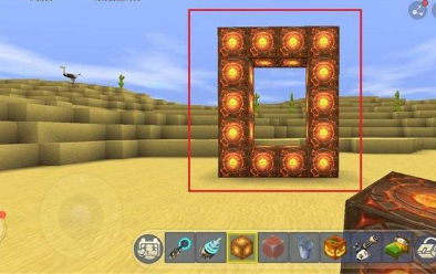 4、接着在地心门框的中间空心处放上地心传送门块,放6个即可。