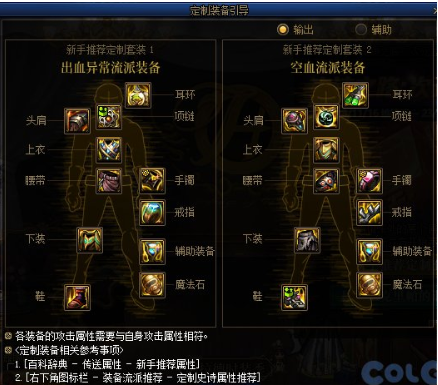 装备定制:新手推荐定制就是推荐你哪些部位可以用自定义,用什么属性的自定义。