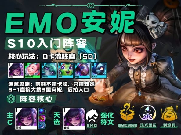 云顶之弈emo安妮阵容怎么玩?s10emo安妮阵容怎么出装?云顶之弈已经到了s10赛季了,很多的小伙伴不知道什么阵容才是最强的,那就是emo安妮阵容,那么这个阵容究竟怎么玩呢?下面小编为大家带来了阵容与出装攻略,一起来看看吧!