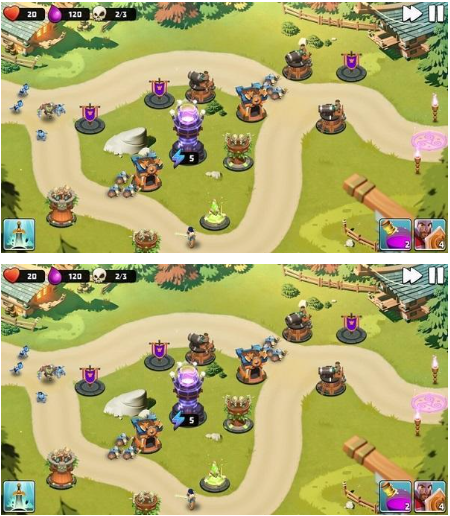 (3)玩家要学会最大化利用地形,尽量选择一个好的合适的位置,尽量做到输出最大化,尤其是在敌人有2条路可走时,把防御炮塔建在2条路的交叉口会好些。