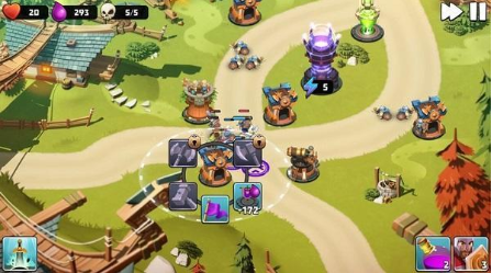 (2)玩家要学会合理利用紫色币,当紫色币达到一定数量后要学会选择该给建造的炮塔升级还是重新建造新炮塔,哪种效果比较好就选择哪种方式。