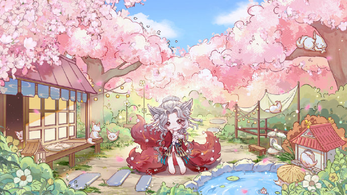 先前引路的小狐狸已不知躲藏在何处,只见站在院落中的本真三尾狐笑意更甚。纸环顾庭院四周,小狐狸都躲在哪里了呢?