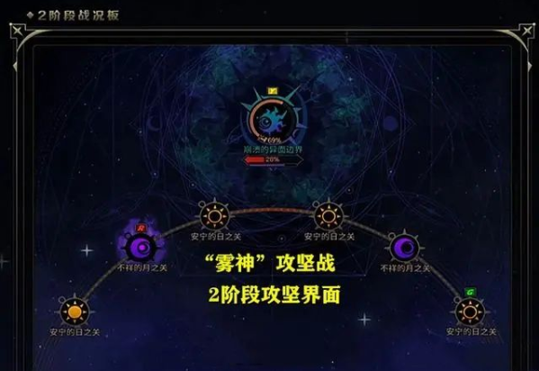 “雾神攻坚战”团本,一共分为3个阶段,在开始每个阶段前,都需要选择攻坚战进行的方向,也就是“启示+BUFF”选择。