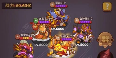 如果boss是普攻优先攻击一号位的友方单位,并且攻击力非常高的话,玩家就可以尝试一下这套阵容,将庞统以及公孙瓒放在一号位以及二号位献祭,然后吕布放在三号位吃伤害开出心魔被动增伤,进行强力输出,貂蝉是这套阵容当中的核心武将,等级最低要保证全队最低速度,最后一个出手就可以稳定的减怒让boss没办法释放技能,只能够通过普攻来攻击吕布,之后贾诩不仅仅可以凑3群阵营羁绊加成,还可以降低boss的防御力以及伤害减免的属性,对于吕布的伤害提升帮助非常大。
