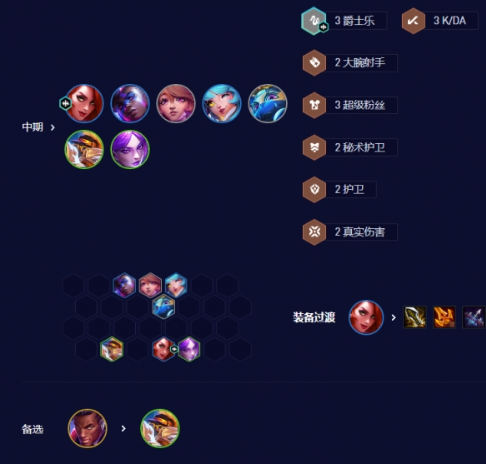前期建议用3超级粉丝打工,后排用飞机或者金克斯带女枪装备,这是目前比较好的过度方式