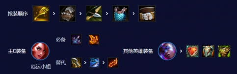 装备优先铲子合爵士乐转,其次就是拳套女枪的轻语无尽(超粉偷杀人剑),护甲腰带优先给艾克做肉装。